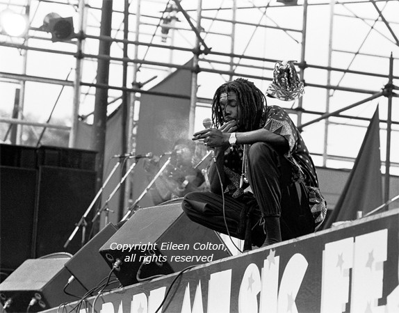 Supporting everyone from Foreigner to Kansas, Tosh firmly believes it is possible to get the reggae music he so expertly delivers across to the American rock ‘n’ roll public. His first two albums released on CBS, Legalize It and Equal Rights, did not sell well despite critical acclaim. Yet his latest effort on Rolling Stones Records has the proper ingredients to convert even skeptics, smoothly crossing the commercial barrier without losing any musical credibility.