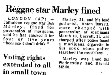 The first article speaks to the shift in emphasis on more overtly political topics on the Exodus album. The second speaks to Marley’s court appearance the previous month in London for possession of ganja.