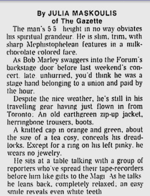 I have a small cutout of Bob, next to him the famous mantra “The greatness of a man…”, and at the bottom, “The Forum. Montreal. Quebec 1979-11-02”. Any chance anyone knows where the original piece/article can be found, I’d like a decent copy of of my cutout, to frame….