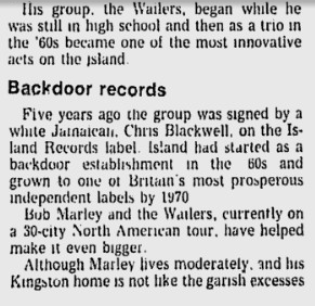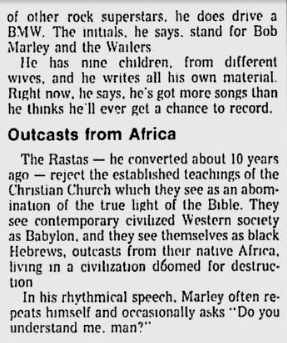 I have also included a link to an interview with Marley by a Canadian journalist at the end of the post.