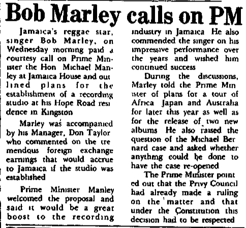 1979, Bob Marley, Bob Marley and the Wailers, Live Performances, Press Archives Bob Marley Does Australia, Builds New Studio 1979 Date: July 4, 2012Author: legendaryreggae 0 Comments Bob Marley and the Wailers performed at Sydney’s Hordern Pavilion on April 27, 1979. BOB MARLEY AND THE WAILERS | SYDNEY | AUSTRALIA | 1979 Jamaica Gleaner, January 20, 1979 Jamaica Gleaner, April 6, 1979 Australia 1979 Australia 1979 Share this: Click to share on Facebook (Opens in new window) Facebook Click to share on LinkedIn (Opens in new window) LinkedIn Click to share on X (Opens in new window) X Click to email a link to a friend (Opens in new window) Email Click to print (Opens in new window) Print Click to share on Reddit (Opens in new window) Reddit Click to share on Tumblr (Opens in new window) Tumblr Like Loading... Related