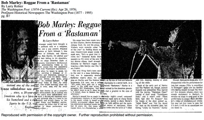 1976, Bob Marley, Bob Marley and the Wailers, Live Performances, Press Archives