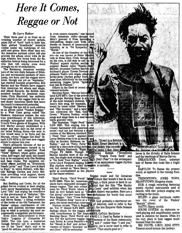Here is a classic 1976 Washington Post story on the emerging reggae scene. As you can see, the U.S. was slow to catch on.