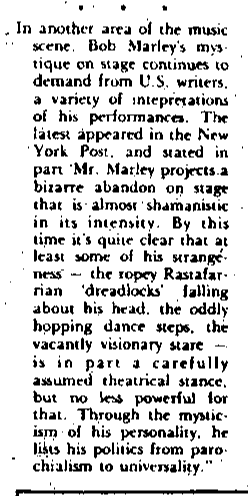 Bob Marley and the Wailers were in NYC to perform at Madison Square Garden as part of the 1978 Kaya tour.