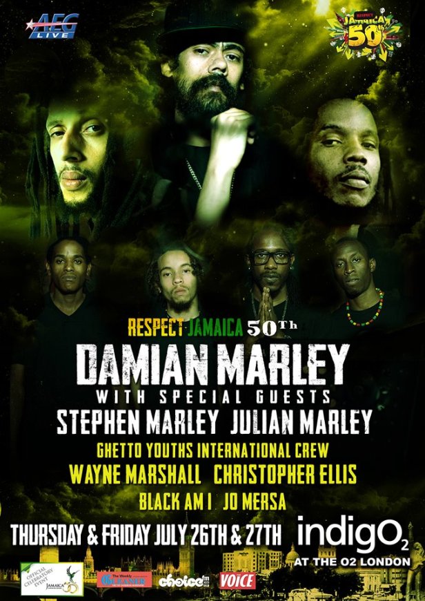Bob Marley and the Wailers Damian Marley, Marley Clan Live at IndigO2, London, July 26, 2012 Date: July 27, 2012Author: legendaryreggae 0 Comments These are the first videos coming from the Jamaica 50 Festival show last night at IndigO2, London, UK: Share this: Click to share on Facebook (Opens in new window) Facebook Click to share on LinkedIn (Opens in new window) LinkedIn Click to share on X (Opens in new window) X Click to email a link to a friend (Opens in new window) Email Click to print (Opens in new window) Print Click to share on Reddit (Opens in new window) Reddit Click to share on Tumblr (Opens in new window) Tumblr Like Loading... Related
