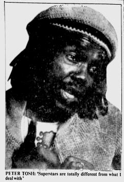 Bob Marley and the Wailers, Press Archives ‘Star Image Shunned By Peter Tosh,’ 1981 Date: September 22, 2012Author: legendaryreggae 0 Comments ‘Star Image Shunned By Peter Tosh’ Interesting article on Peter from the Windsor Star paper, published October 14, 1981. Share this: Click to share on Facebook (Opens in new window) Facebook Click to share on LinkedIn (Opens in new window) LinkedIn Click to share on X (Opens in new window) X Click to email a link to a friend (Opens in new window) Email Click to print (Opens in new window) Print Click to share on Reddit (Opens in new window) Reddit Click to share on Tumblr (Opens in new window) Tumblr Like Loading... Related