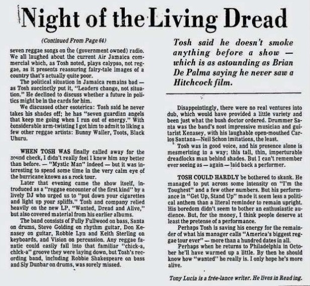 Bob Marley and the Wailers, Peter Tosh, Press Archives