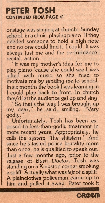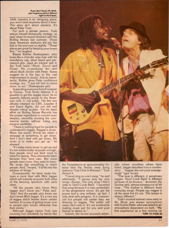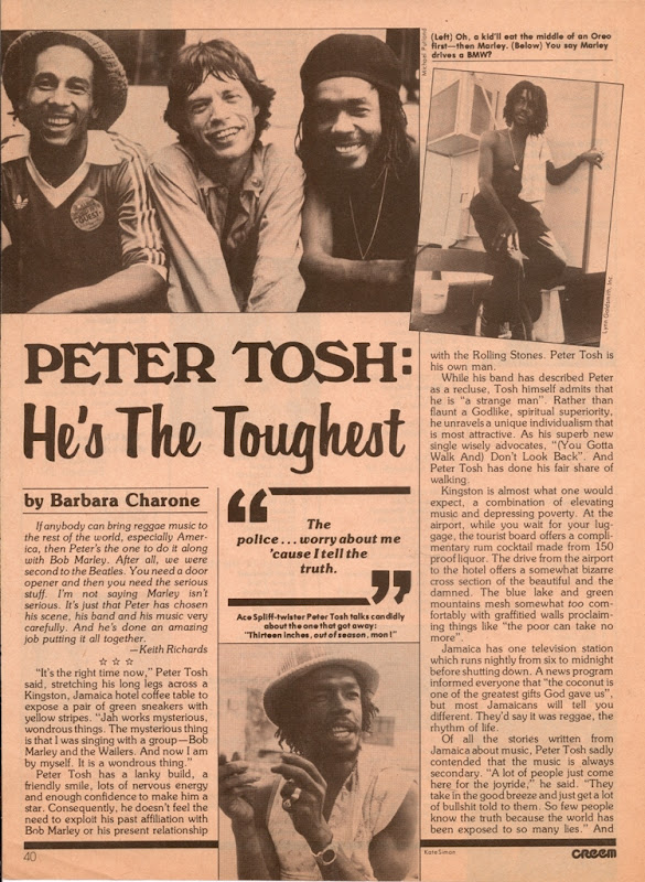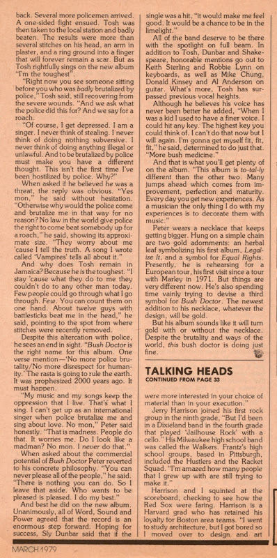 The following article appeared in the March 1979 issue of Creem. Many thanks to blog contributor and owner of www.bobmarleymagazine.com Marco Virgona for linking me with this press archive.