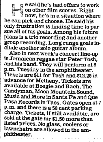 Yes!  He played it in 1981 and 1983!  According to the Santa Fe New Mexican, Tosh performed at the Paolo Solari Amphitheater on August 14, 1981 and July 19, 1983.