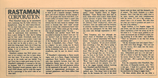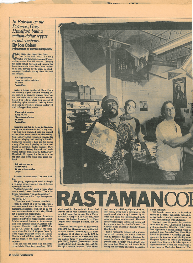 From the June 12, 1987 issue of the Washington City Paper, live and direct from the Doctor Dread reggae archives I present to you Rastaman Corporation: Babylon On The Potomac – The Story of RAS Records.