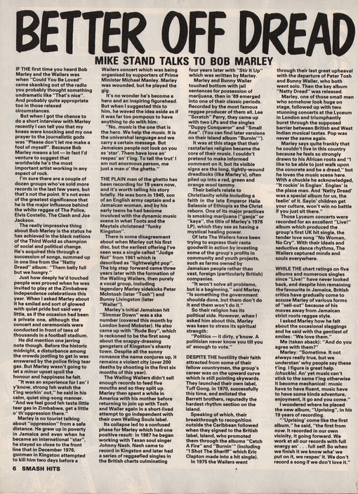 As we continue to share with you articles documenting the life of Bob Marley, I am pleased to report that I finally got my hands on a near-mint copy of the Smash Hits issue which was published on August 7, 1980.