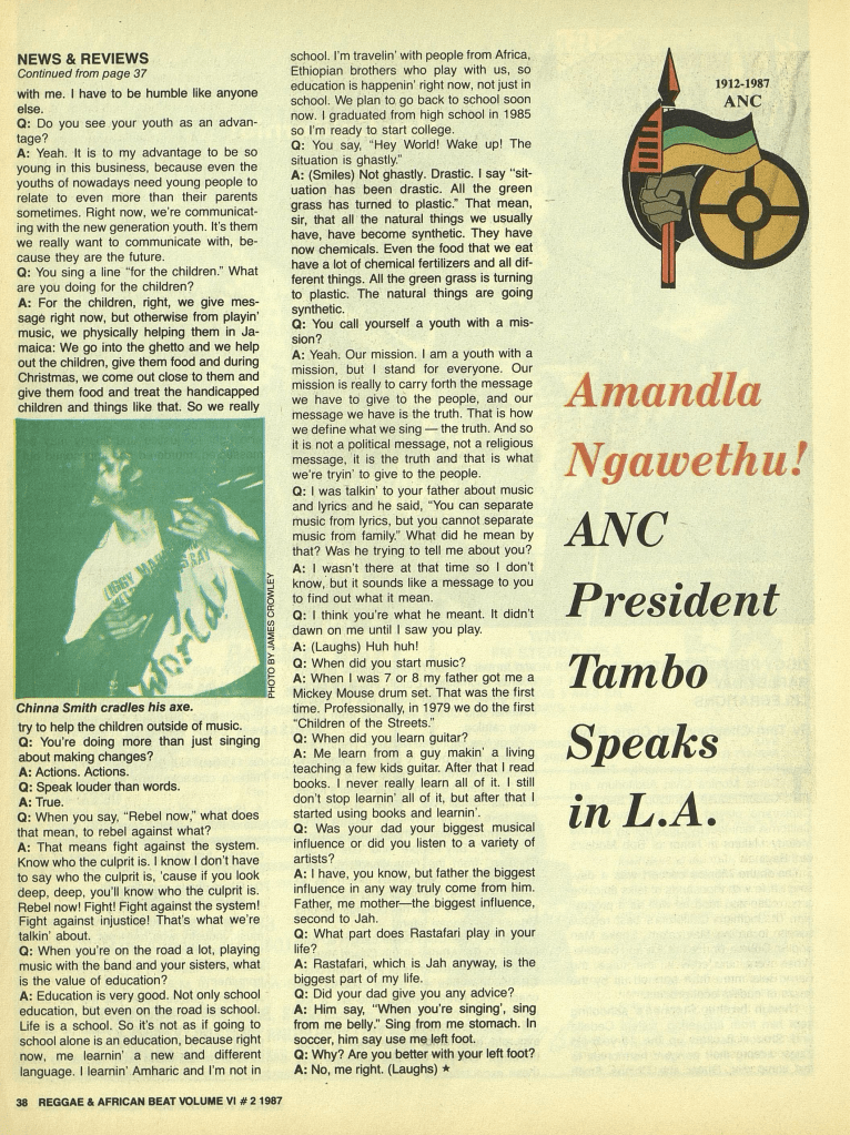 Also included here is an early interview with Ziggy by Tom Cheyney and Chris Boyle which appeared in Reggae and African Beat in 1987. The interview is interesting as it gives some perspective as to the pressures this young man was dealing with early in his career.
