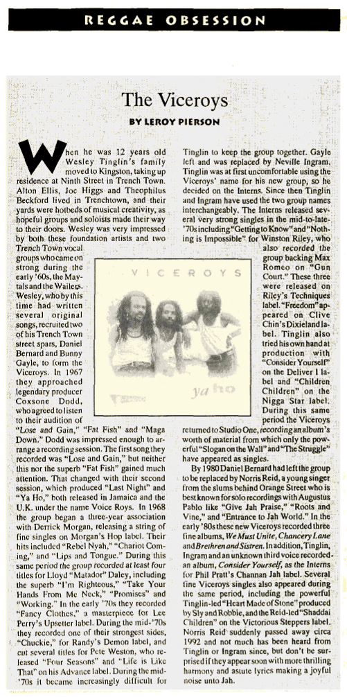 Also included here is a rare feature on The Viceroys written by Leroy Pearson which appeared in The Beat…