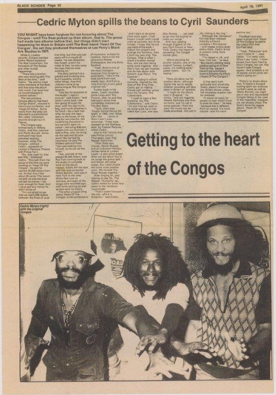Also included here is a feature on the Congos which appeared in Melody Maker on April 18, 1981…