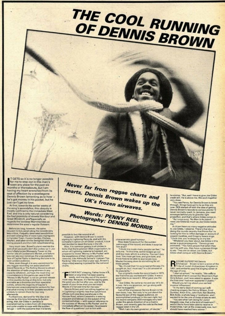 Also included here is a feature on Dennis Brown written by Penny Reel and published in New Musical Express…