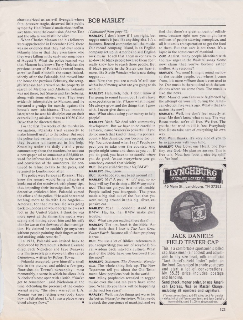 Bob Marley, Bob Marley and the Wailers, Interviews, Press Archives
