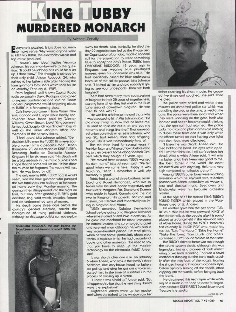 Also included here is a fascinating story about the life and death of the great King Tubby which appeared in 1989 in REGGAE REPORT.