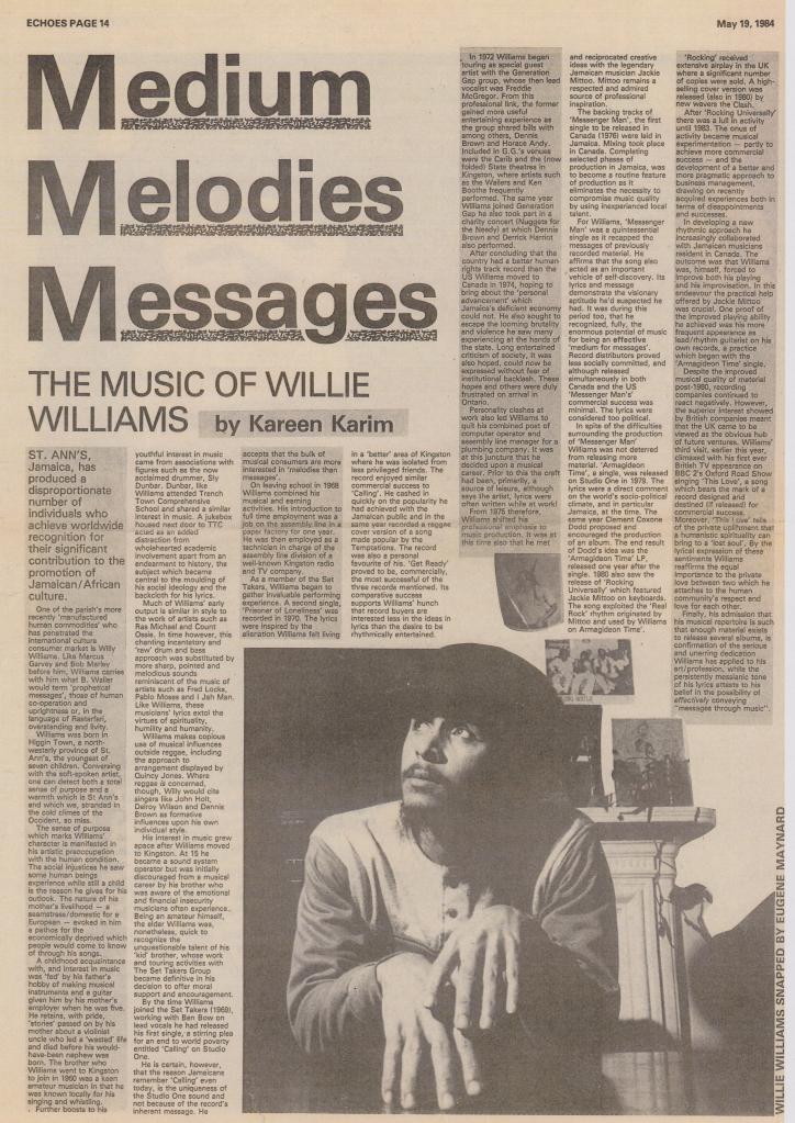 Also included here is a profile of Willi which appeared in BLACK ECHOES on May 19, 1984.