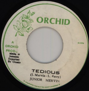 Junior Murvin’s “Tedious” appears on the landmark Black Ark LP POLICE AND THIEVES. It was released as a 7″ single on the Orchid, Mango and Island labels. A deep, rootsy signature tune from the great Junior Murvin.
