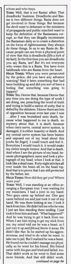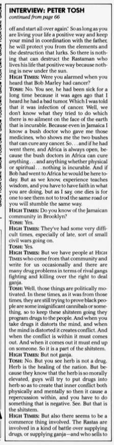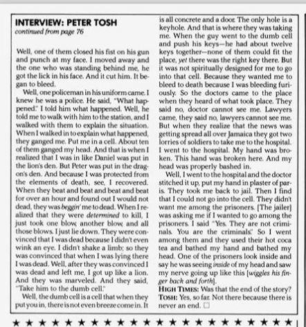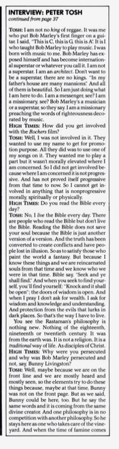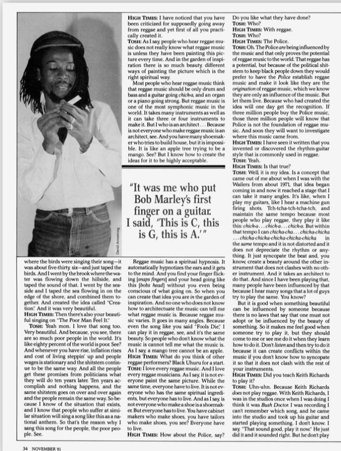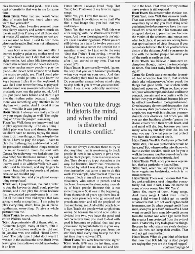 Today we have a rare vintage interview with the late, great Peter Tosh which was published in the November 1981 issue of High Times Magazine. Peter Tosh was in the midst of promoting his new album WANTED DREAD AND ALIVE. The interview was conducted by journalist John Swenson, who asks some very pertinent and probing questions.