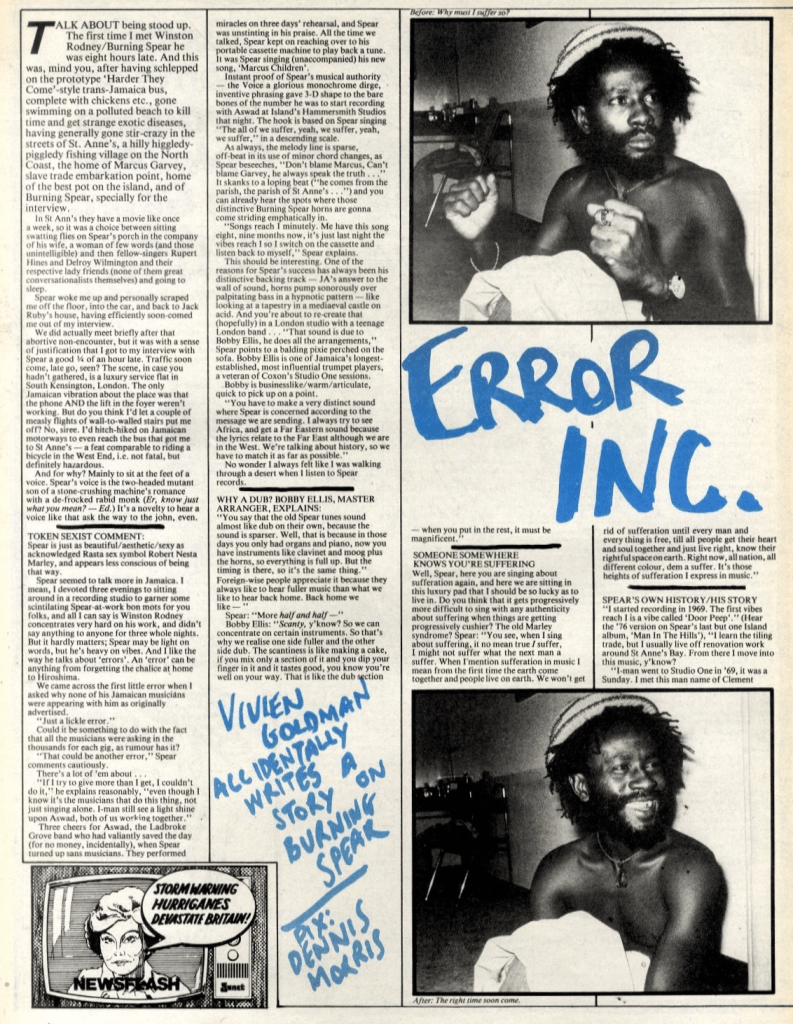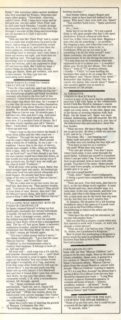 I added this Burning Spear dubplate to my collection several years ago and I just love the sound of it…Also included here is a profile on Spear by our friend Vivien Goldman which appeared in Sounds Magazine.