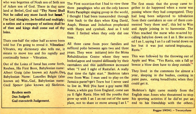 Also included here is a rare feature on Israel Vibration from Jamaica’s Swing Magazine, August/September 1977.