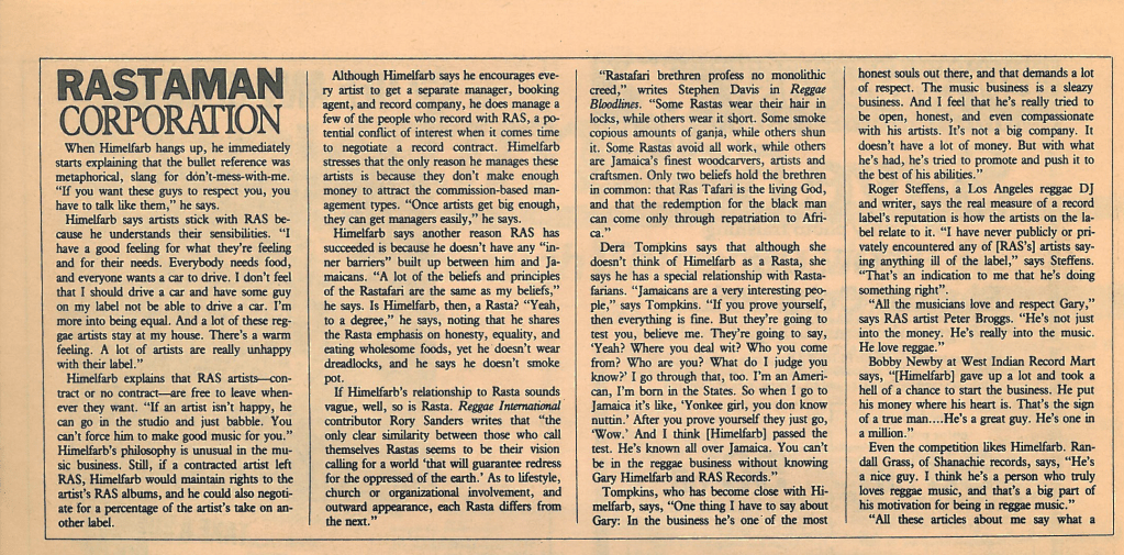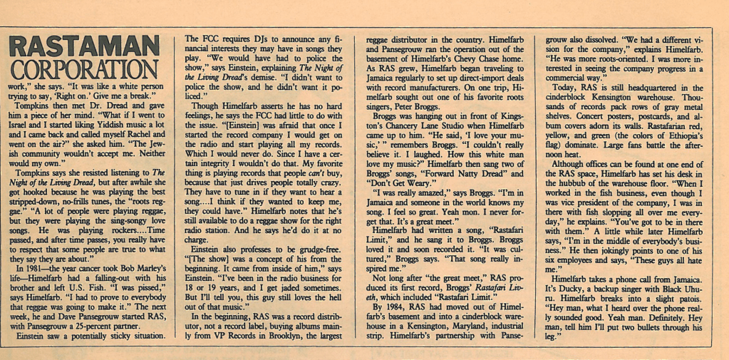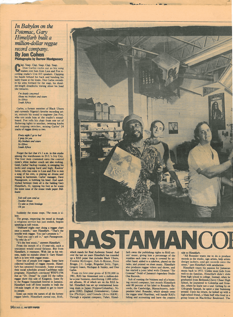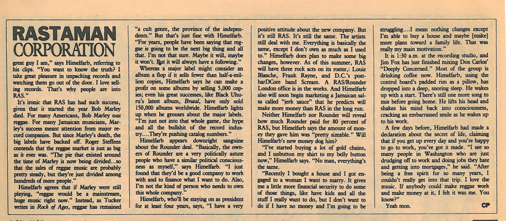 And now a little history about reggae in Washington, D.C. and the formation of RAS Records from the June 1987 issue of the Washington City Paper…