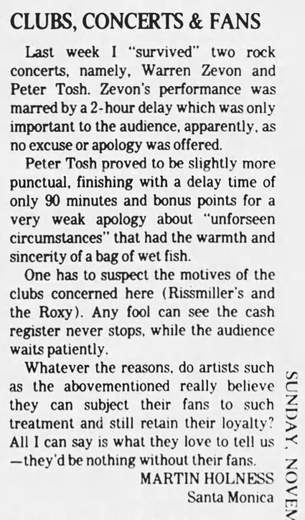 Here we have Peter Tosh’s live performance at the Roxy Theater on November 5, 1982 during the four night run…