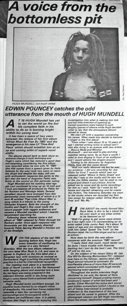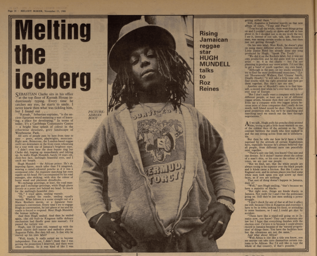 As always I give you guys something special from my collection. Here is a feature on Hugh Mundell penned by Roz Reines which appeared in Melody Maker on November 15, 1980. Roz was lucky enough to catch up with Hugh when he was visiting London for a show.
