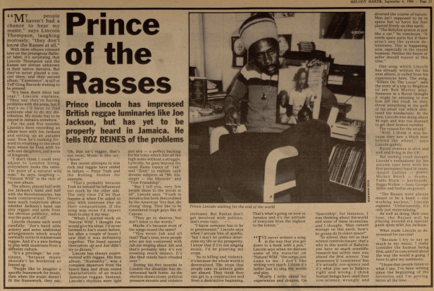 Also included is an interview with Prince Lincoln by Roz Reines that appeared in the Melody Maker September 1983.
